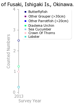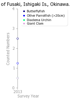 カウントなし:イサキ類(コショウダイ類), フエダイ類, サラサハタ, メガネモチノウオ, カンムリブダイ, ウツボ類, オトヒメエビ, パイプウニ, シラヒゲウニ, シャコガイ類, ホラガイ