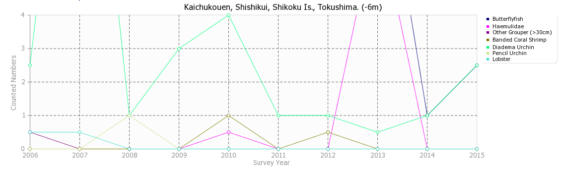 カウントなし:イサキ類(コショウダイ類), フエダイ類, サラサハタ, ハタ類(30cm以上), メガネモチノウオ, カンムリブダイ, パイプウニ, ナマコ類, オニヒトデ, シャコガイ類, ホラガイ