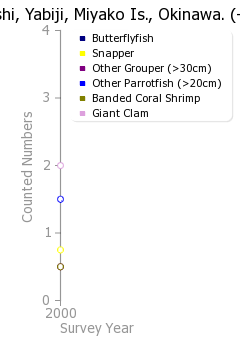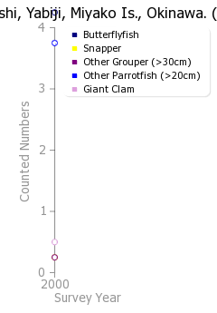 カウントなし:イサキ類(コショウダイ類), サラサハタ, メガネモチノウオ, カンムリブダイ, ガンガゼ類, パイプウニ, ナマコ類, オニヒトデ, ホラガイ, イセエビ類