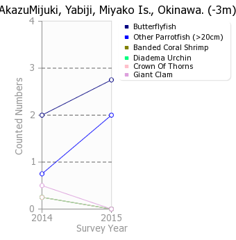 カウントなし:イサキ類(コショウダイ類), フエダイ類, サラサハタ, ハタ類(30cm以上), メガネモチノウオ, カンムリブダイ, ウツボ類, オトヒメエビ, パイプウニ, シラヒゲウニ, オニヒトデ, ホラガイ, イセエビ類