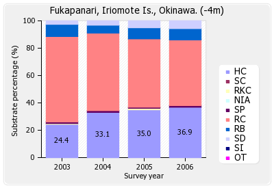 リーフチェック 西表島 外離島南 (沖縄県) 底質分類の経年変化