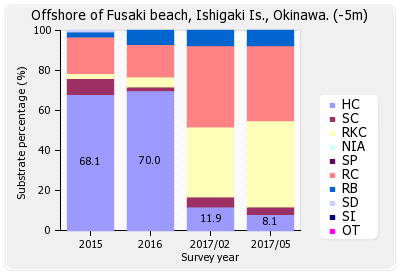 リーフチェック 石垣島 フサキ沖 (沖縄県) 底質分類の経年変化
