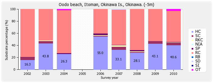 リーフチェック 沖縄本島 大度海岸2 (沖縄県) 底質分類の経年変化
