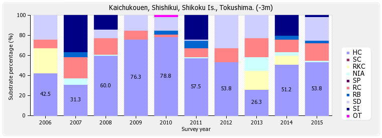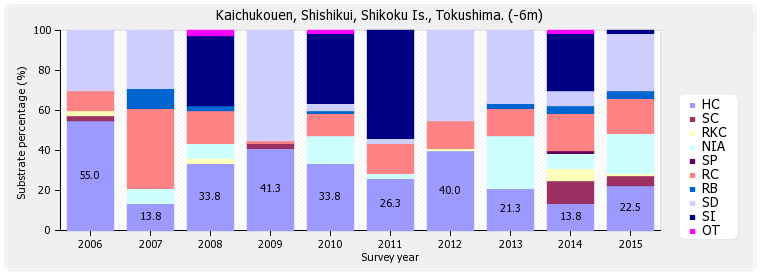 リーフチェック 四国 宍喰 海中公園(50m) (徳島県) 底質分類の経年変化
