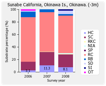 リーフチェック 沖縄本島 砂辺カリフォルニア (沖縄県) 底質分類の経年変化