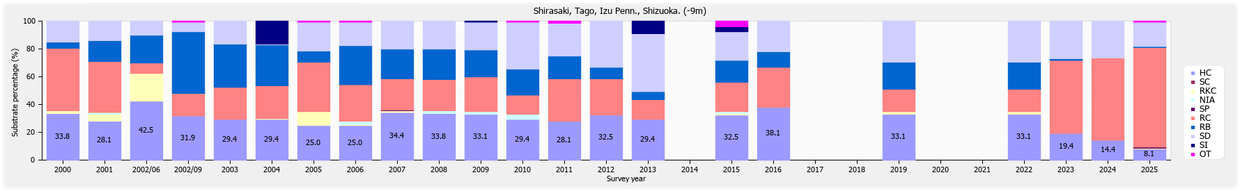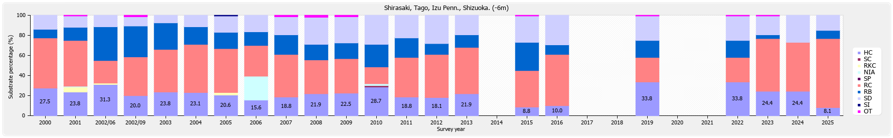 リーフチェック 西伊豆 田子 白崎 (静岡県) 底質分類の経年変化