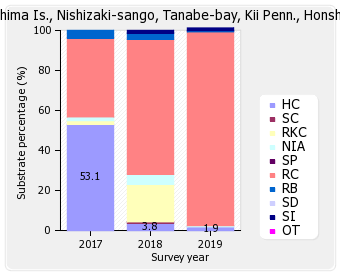 リーフチェック 紀伊半島 田辺 西崎サンゴ・沖ノ島北 (和歌山県) 底質分類の経年変化