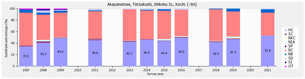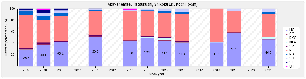 リーフチェック 四国 竜串 赤屋根前 (高知県) 底質分類の経年変化