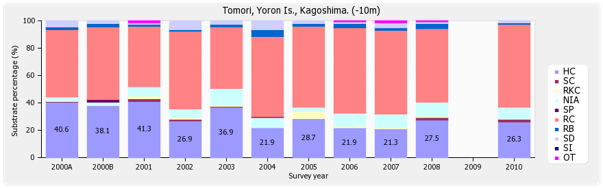 リーフチェック 与論島 供利 (鹿児島県) 底質分類の経年変化