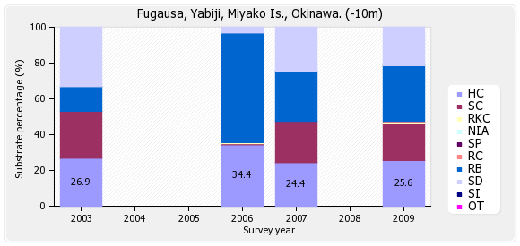 リーフチェック 宮古島 八重干瀬3 フガウサ (沖縄県) 底質分類の経年変化
