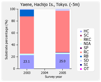 リーフチェック 八丈島 旧八重根港 (東京都) 底質分類の経年変化