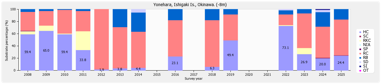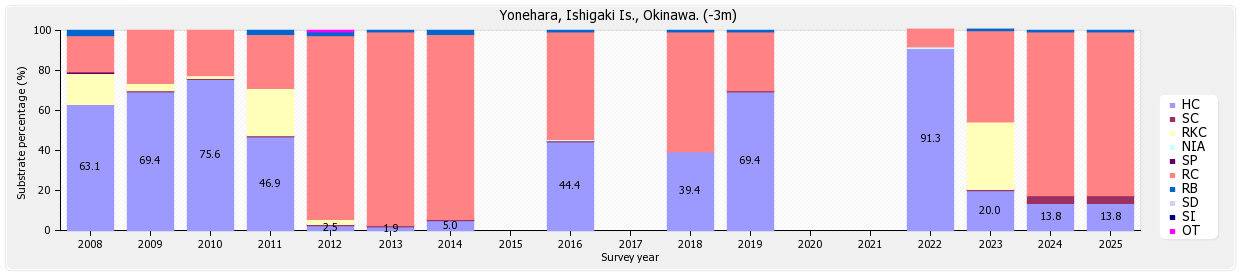 リーフチェック 石垣島 米原 (沖縄県) 底質分類の経年変化